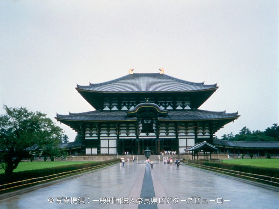 Located in Nara, present-day Todai-ji Temple is the head temple of the Kegon school of Buddhism and one of Japan’s most significant historical sites. It was established in the 8th century by Emperor Shomu to serve as the central provincial temple, as a national project intended to secure peace and prosperity through the power of Buddhism. The temple’s Great Buddha Hall was twice destroyed by fires during major conflicts in 1180 and 1567, but was rebuilt in the subsequent Kamakura and Edo periods.
